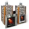 Это мультирежимная банная печь. Она обладает двумя каменками - закрытой и открытой. В закрытой каменке камни находятся в замкнутом пространстве и разогреваются со всех сторон до температуры 600 градусов. Это позволяет создать комфортный микроклимат в парной для режима русской парной бани с обилием сухого легкого мелкодисперсного пара, выдаваемого при помощи горловины встроенного парообразователя, подающего воду прямо в большую закрытую каменку, а также получить обычный влажный пар с верхней открытой каменки.