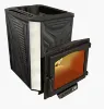 Основная конструктивная особенность банной печи Пегас 16 является внутренняя закрытая каменка из нержавеющей стали. Кроме того, банная печь оснащена сеткой по периметру, в которую также закладываются камни. Загрузка во внутреннюю каменку происходит через специальное отверстие в верхней части печи. Закрытая каменка постоянно находится под термической нагрузкой, прогревая камни, практически, со всех сторон. Вода в закрытую каменку подается через специальную горловину, встроенную в сетку. Далее, через систему распределения жидкости равномерно подается на нагретые камни.