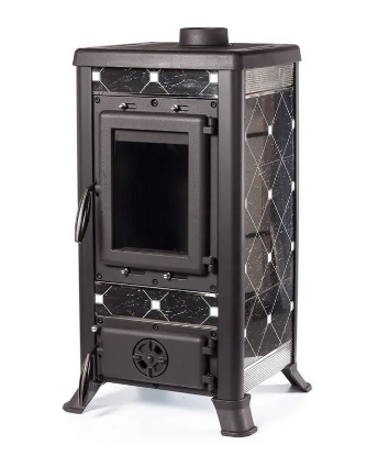 Печь-камин FireWay Klemens - дровяная чугунная печь тепловой мощностью 8 кВт., КПД 75%, имеет систему дистанционного сброса золы с колосника. Загрузка дров фронтальная. Расположение дымохода сверху. Отделка антрацит с керамическими вставками белого, серого, красного или синего цвета. На все печи FireWay действует 5-летняя гарантия производителя.