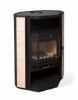 Пристенно-угловая Печь-камин Мета-Бел Печора Аква с панорамным обзором оборудованная водяным теплообменником. Призматическая дверка из трех стекол высотой 330 мм. Для топки используются дрова лиственных пород высотой до 30 - 50 см. Ориентировочно объем теплоносителя, при котором система отопления будет функционировать нормально, составляет 50 – 90 л. Необходимая производительность насоса для стандартной (50-90 л.) отопительной системы составляет 0,4 м3/ч.