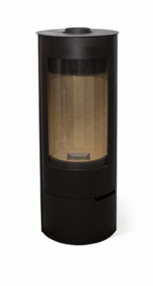 Печь выполнена в современном дизайне. Установлена на опорную круглую стойку, на которой может поворачиваться. Наблюдать за горением можно через широкое радиальное стекло, установленное в дверцу высотой 850 мм и шириной 500 мм. На выбор доставляется в черном и антрацитовом цветах. Предусматривает верхнее подключение к дымоходу диаметром 150 мм.